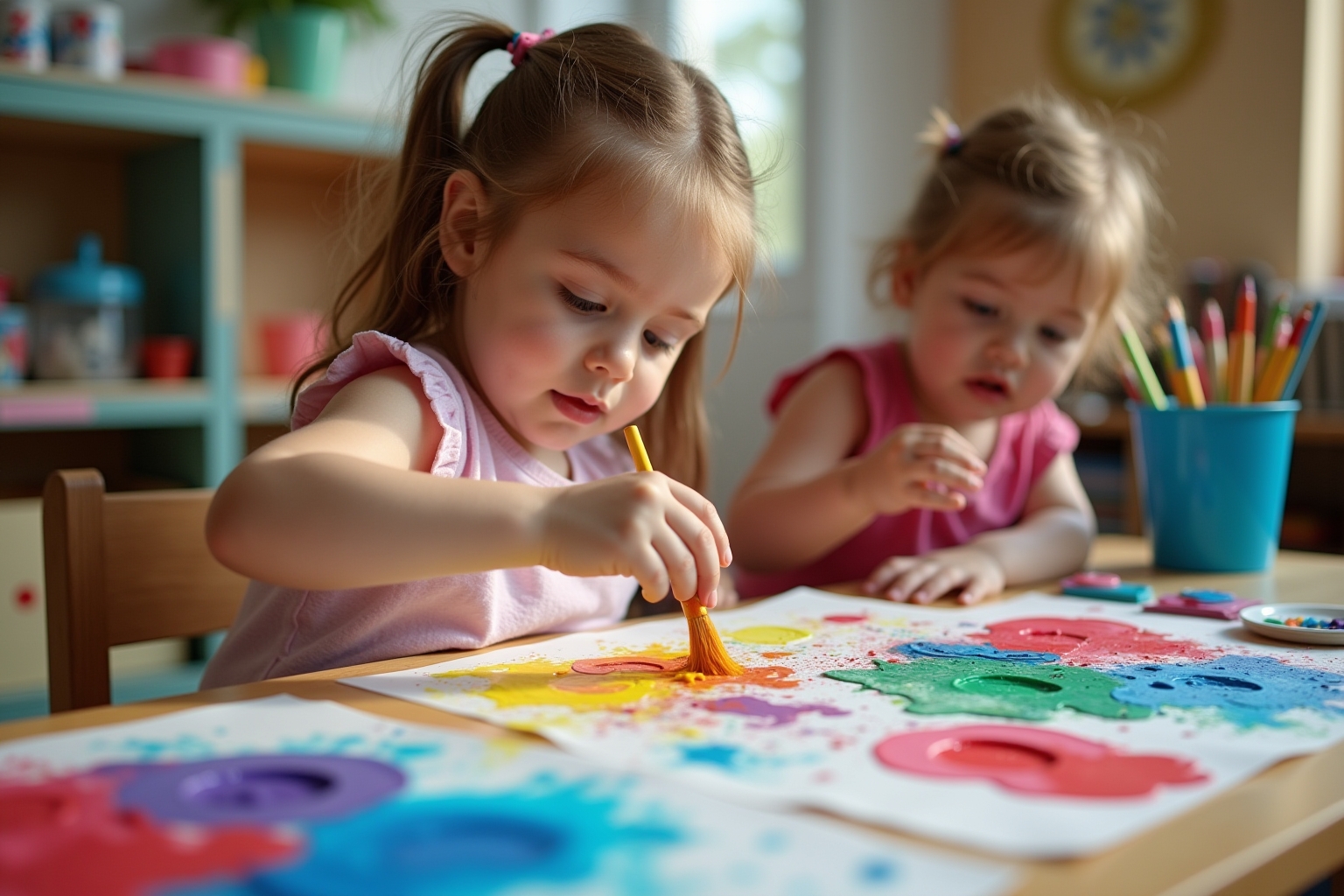 Ganzheitliche Entwicklung: Farbenprojekte bieten ideale Möglichkeiten zur Förderung der Feinmotorik, Sprachentwicklung und sozialen Kompetenzen.